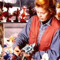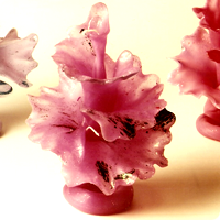 Prefabricated slates of wax are warmed in a water quench before being equipped with a candlewick and modelled into formations resembling orchids. We also offer these handicraft presentations as workshops on Christmas markets.
